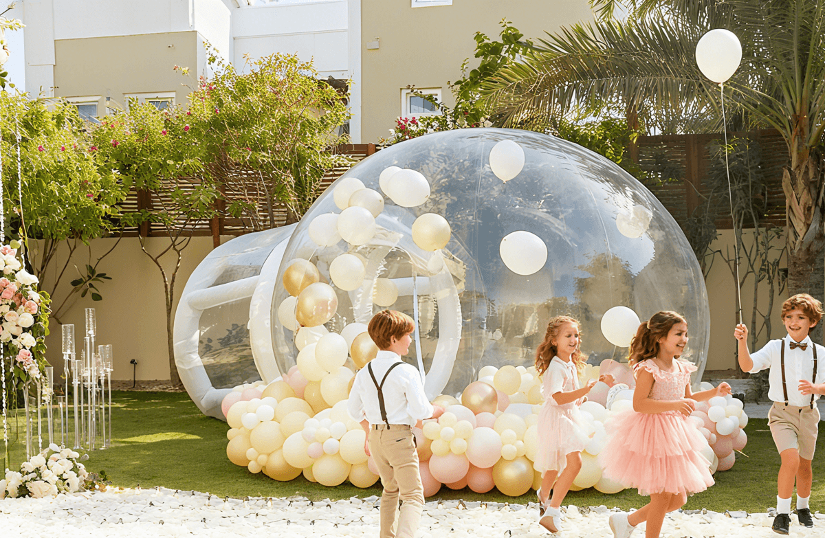 Made with eco-friendly PVC & durable TPU. Crystal-clear walls for 360° views. Perfect for events, parties & unique experiences! ✨