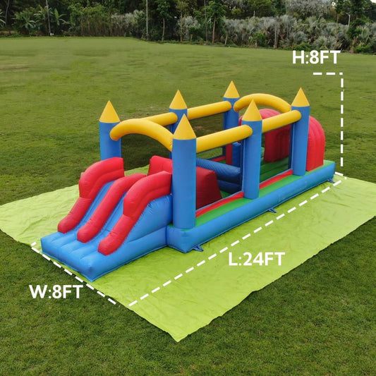 24' Inflatable Obstacle Course Bounce House Inflatable Slide for Kids Adults/with 1100w Blower/ 100% PVC Commercial Bounce House with Slide