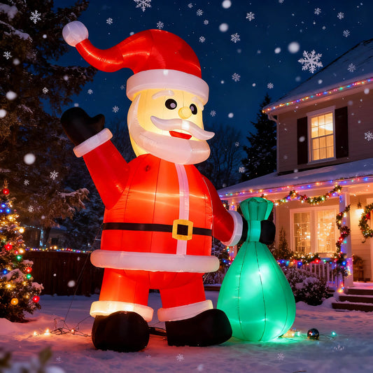 33ft/10m Christmas Inflatable Santa Claus with Blower Flat Gift Bag Giant Christmas Inflatable Santa