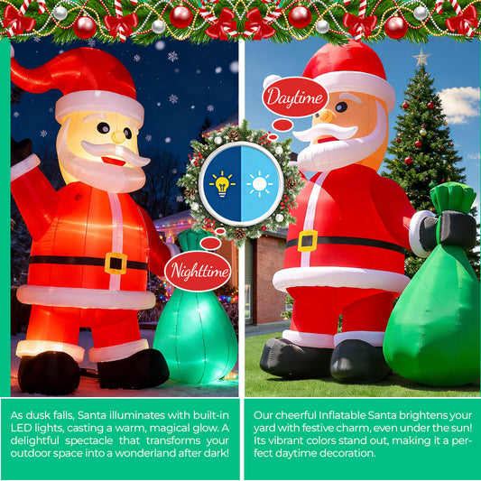 Lighted Christmas Inflatable Santa Claus Built-in LED Light 26/33ft