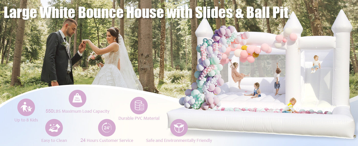 13ft Commercial White Bounce House for Kids White Jumping Castle with Slide & Ball Pool for Biday Backyard Toys
