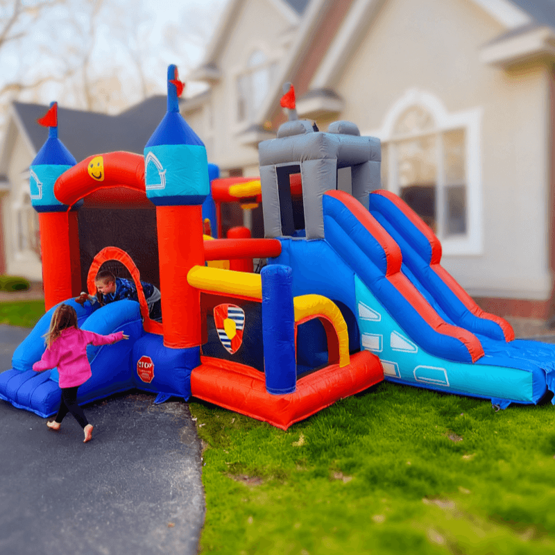 The K08 Medieval Play Castle (16x11ft) delivers obstacle courses, sliding, climbing & ball pit adventures in one compact setup. Designed for ages 3-8 - because great memories don't require a huge backyard.