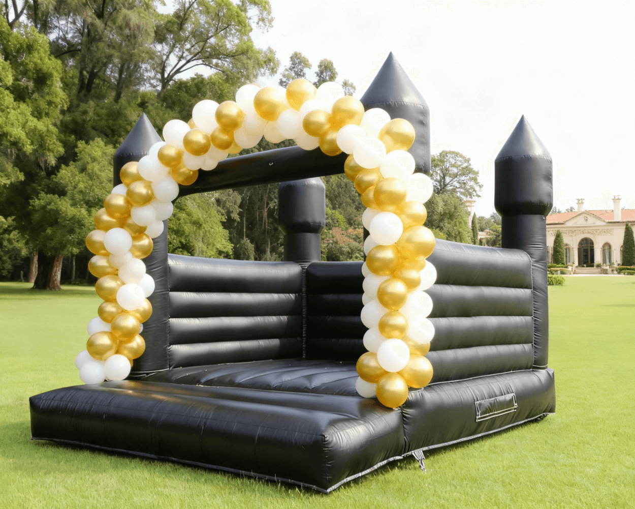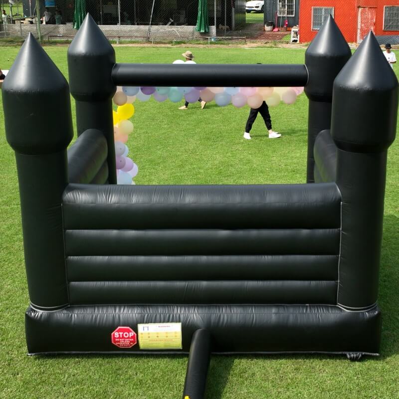 Break away from traditional bounce houses with our sleek, all-black design. More than a play space, it’s a customizable backdrop for your imagination—perfect for moody wedding shoots, glamorous gender reveals, or chic baptism parties.