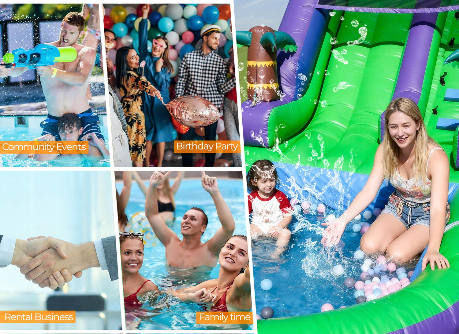 Designed for convenience, our water slide is quick to inflate, easy to store, and portable—perfect for backyard parties, events, or family gatherings.