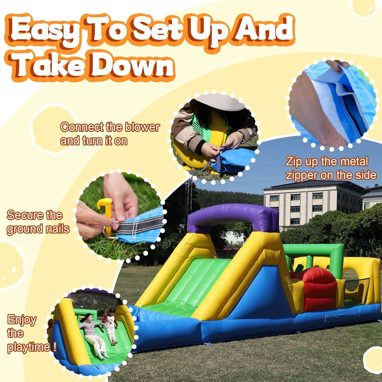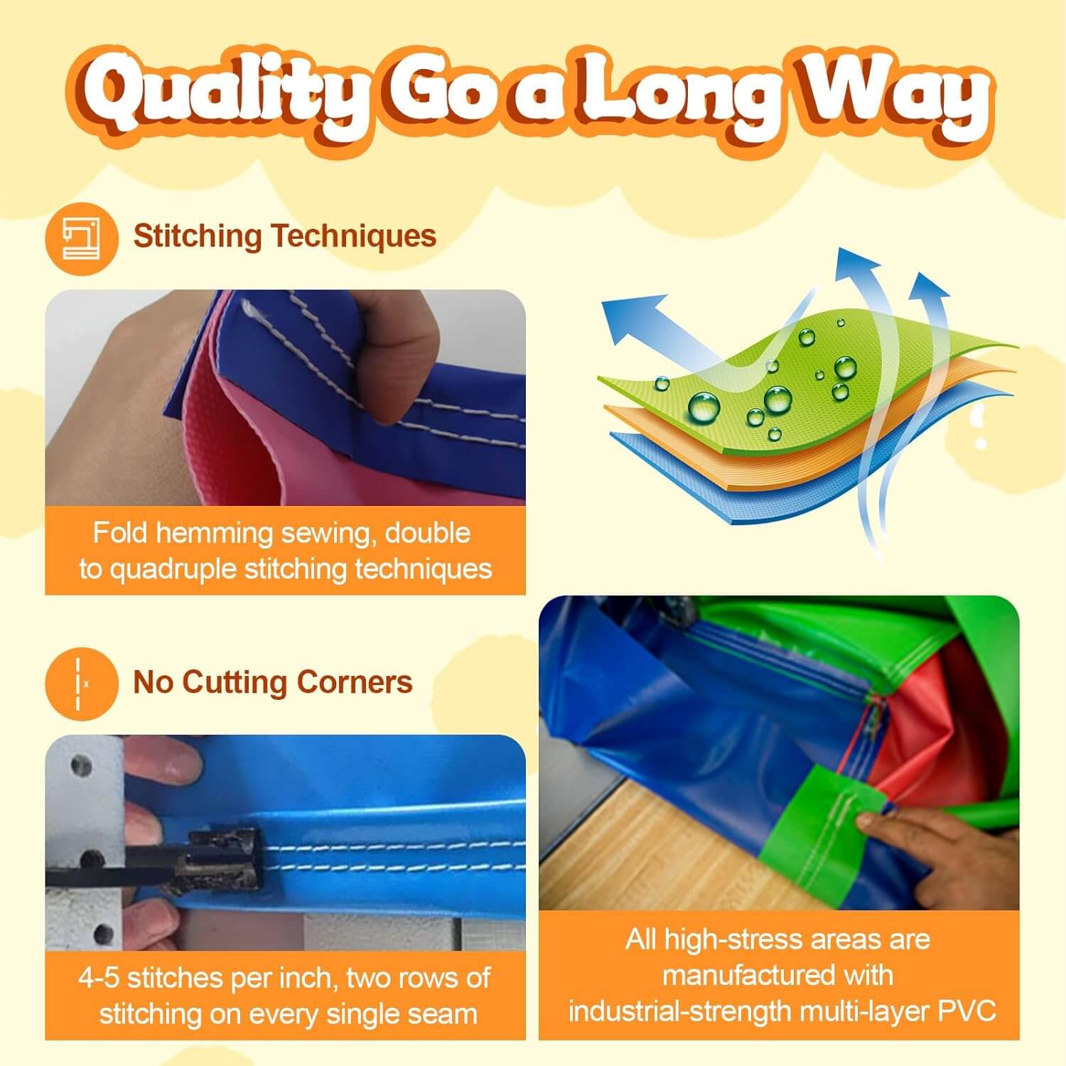 Built with extra-wide slides for safety and excitement, and crafted from heavy-duty PVC that outperforms standard Oxford fabric in durability and toughness.