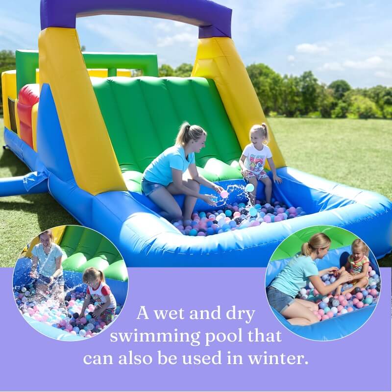Built with extra-wide slides and wet dry ball pit pool can accommodate up to 4 children sliding at once. The pool is sealed using advanced hot-welding technology to minimize water leakage and ensure long-lasting performance.