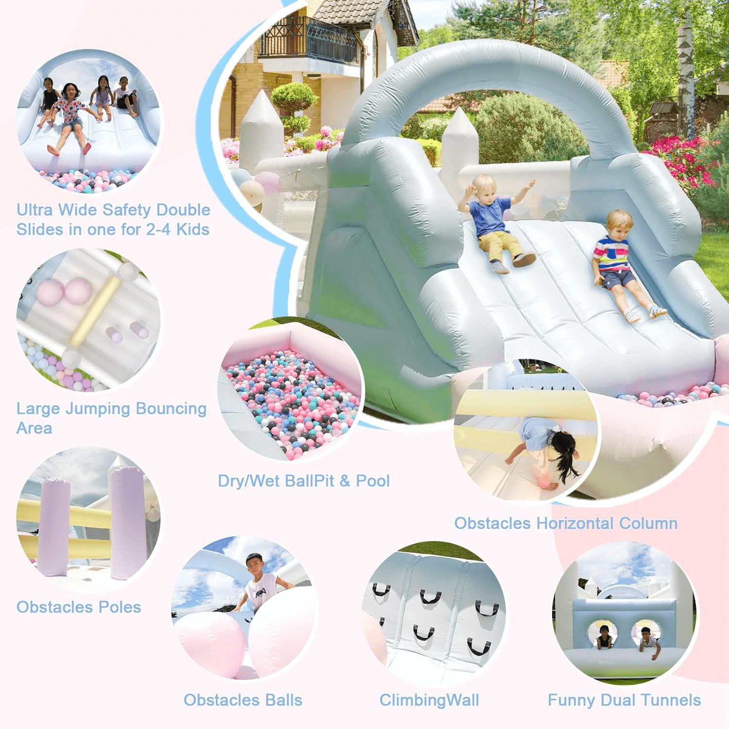 Combines climbing walls, slides, ball pits and obstacles for birthdays, carnivals, or backyard adventures.