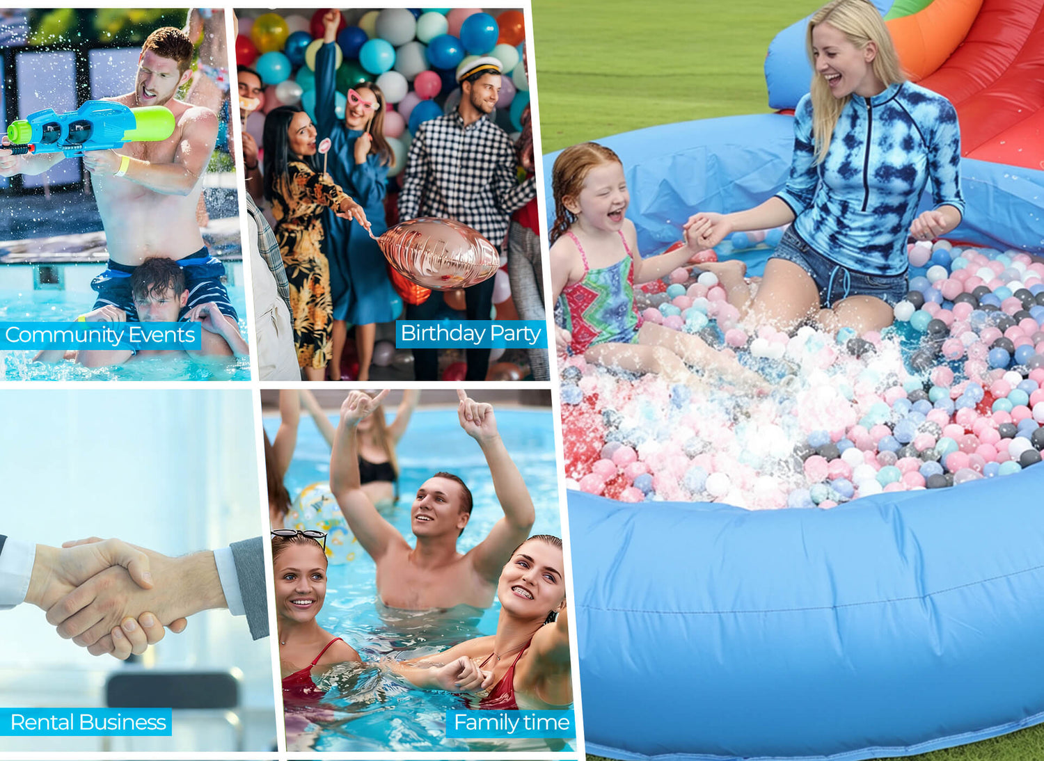 | Maximum of people | 3-4 teenagers or 2 adults at once | 3-4 kids or 2 adults at once | 3-4 kids or 2 adults at once | 3-4 kids or 2 adults at once |