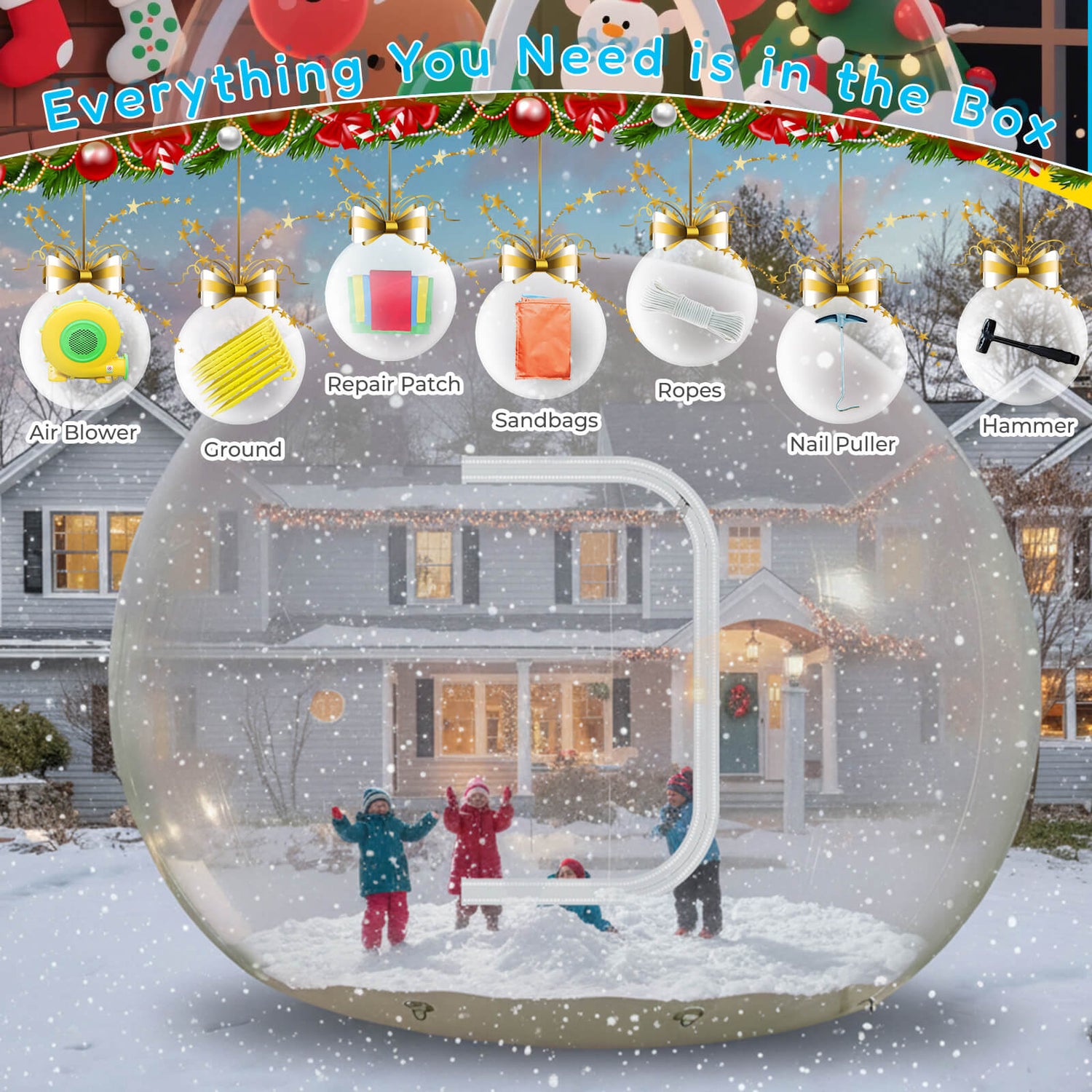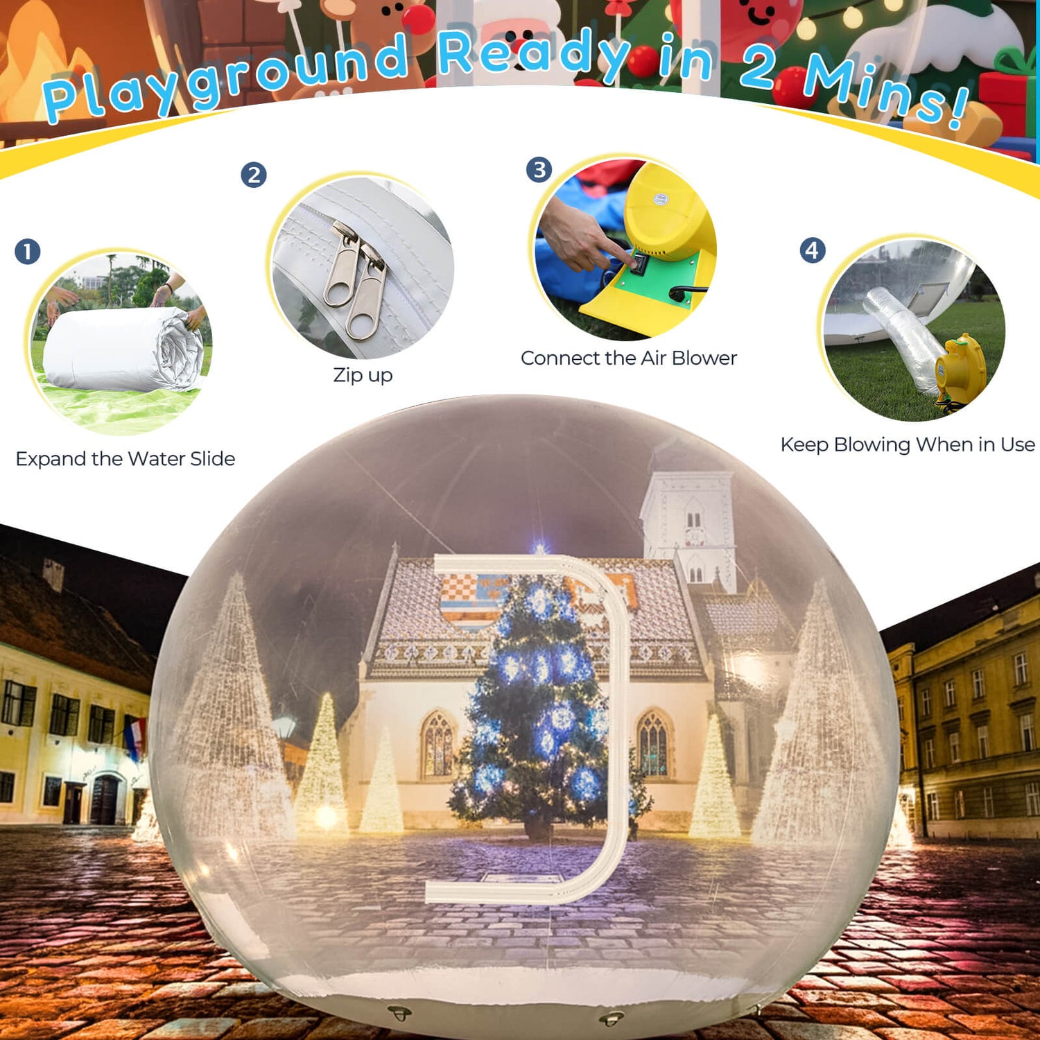 - Snow Globe Inflatable with a diameter of 10', a height of 8.2'
