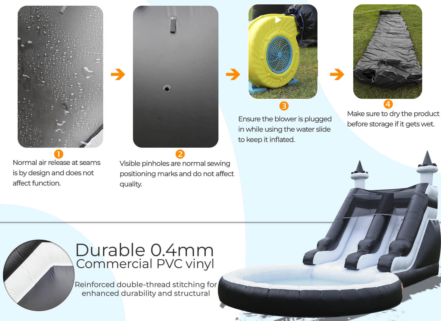 - Lightning-Fast Drainage Upgrade!Dual bottom valves flush out pool water 3x faster—drying your slide in minutes, not hours. More play, less wait!