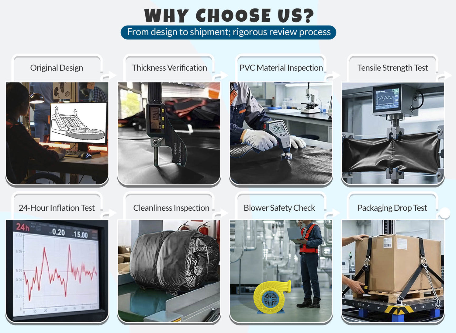 Engineered for lasting joy. Our castle theme water park use premium 0.4mm PVC and pass a strict 24-hour pressure test, ensuring superior durability and safety for worry-free, endless fun.